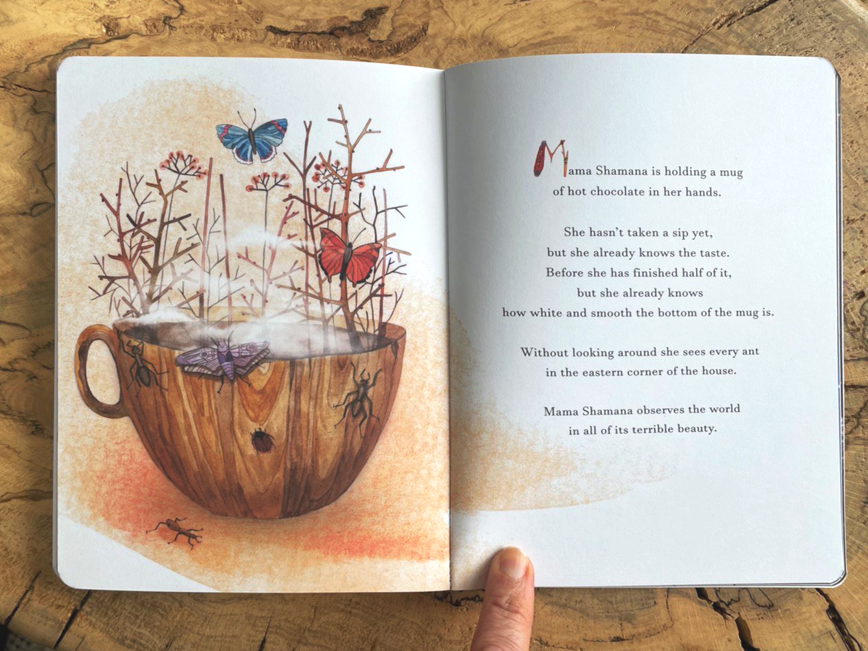 “Mama Shamana has nine sisters. She saw the first one even before birth, the second one – only once and only halfway. The third one plays the jaw harp better than she ties shoelaces, the fourth and fifth are so alike that sometimes they switch lives without even noticing it. The sixth one doesn’t remember her name but never forgets a single face. The seventh one follows the eighth like the moon follows the sun, but always remains in the shadow. The eighth one distorts stories and gives good for evil, so that rye fields grow with swans, and barns are filled with pearls. The ninth one has not yet been born, but already breathes down the neck of the first one.