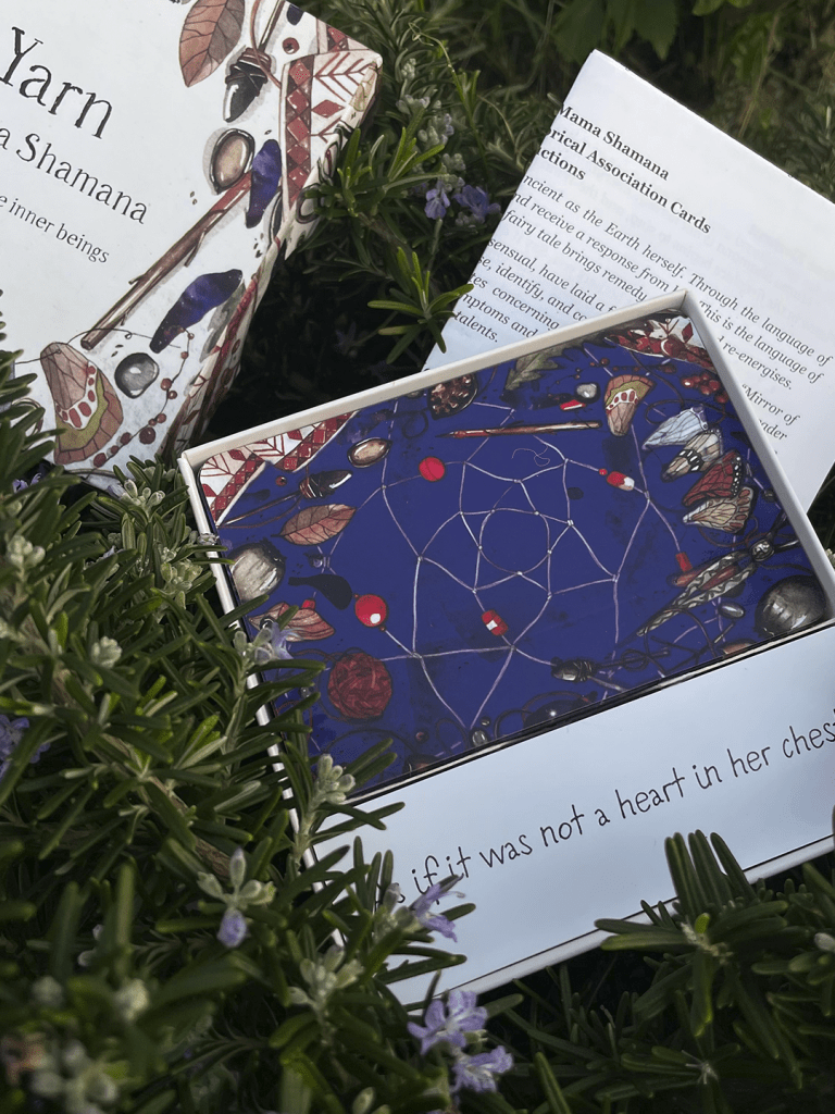 Every card in this deck is a part of a fairytale, your personal story. “Yarn of mama Shamana” is a metaphorical oracle, which means that only you can understand what means one or the other card. The deck contains 50 cards with colorful pictures and 40 cards with text messages, which are working in combination with your question or situation. By picking one picture card and a card with text, and adding your question you build a triangle where the answer is.